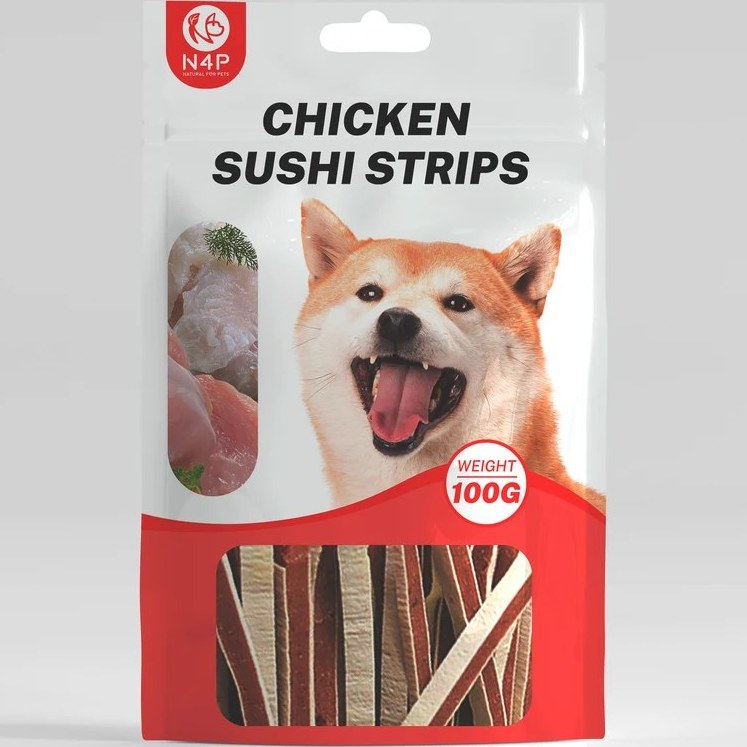 تشویقی سگ N4P مدل نواری طعم مرغ و سوشی وزن 100 گرم