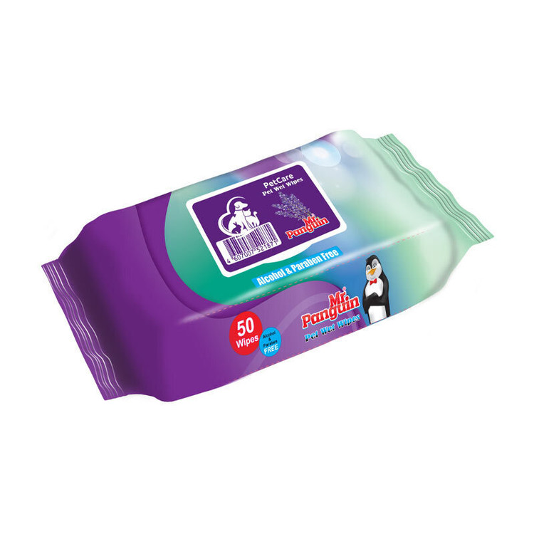 دستمال مرطوب حیوانات مستر پنگوئن با رایحه پاکتی ۵۰ عددی